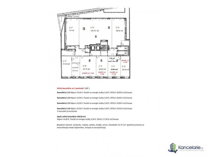 Vybavenie: klimatizácia, kuchynky, 2 x výťah.