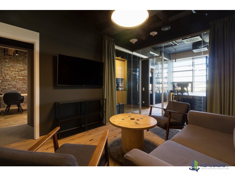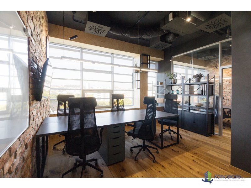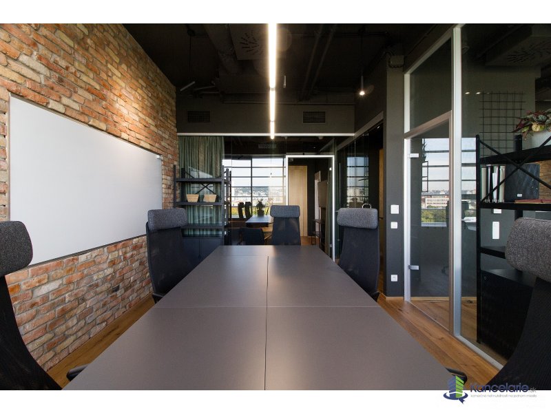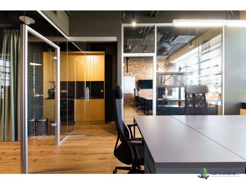 Dizajnová reprezentatívna kancelária 84 m² na 8. podlaží s krásnymi výhľadmi. 2 samostatné kancelárie, spolu 10 pracovných staníc, zasadačka pre 7 ľudí, focus room, lounge „obývačka“ na neformálne stretnutia + kuchynka. Plne zariadené, pripravené ihneď.