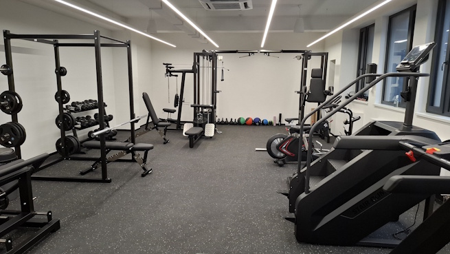 Budova má vlastnú stravovaciu zónu culinarium a nazreli sme tiež do fitness centra, ktoré dm zariadila v spolupráci so známym kondičným trénerom Marošom Molnárom. Nakukli sme na terasu a uvideli masážnu a pohybovú miestnosť, kde sa cvičí joga, pilates a podobne. Dozvedeli sme sa, že skelet budovy pod fitness centrom obnažili až na železobetónovú dosku a stavebne vyriešili tak, aby sa zvýšila nosnosť a zabránil sa prenos vibrácií do iných častí budovy. K fitness centru prináležia aj sprchy.