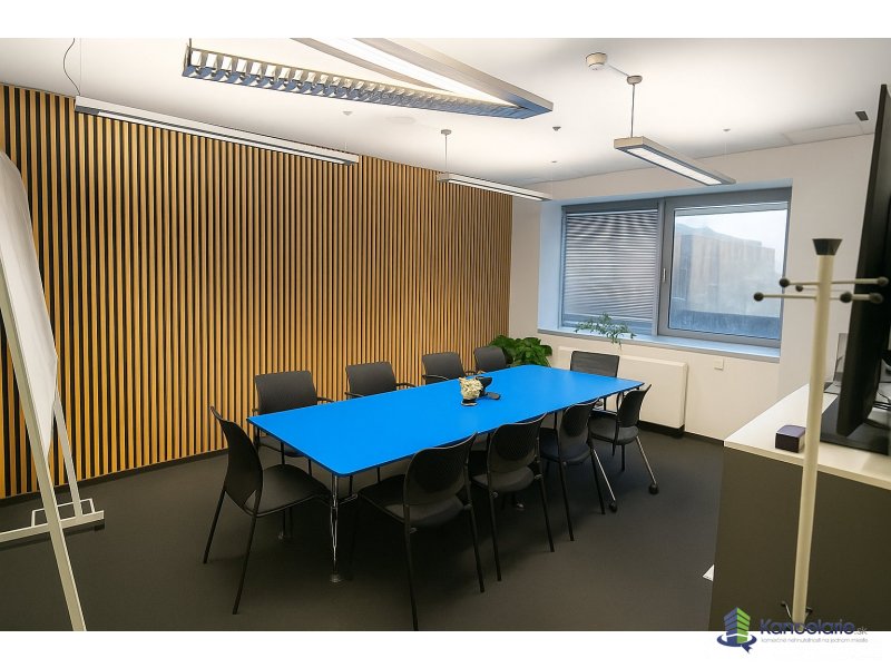 Ponúkame na prenájom reprezentatívne kancelárske priestory s vlastnou zrekonštruovanou kuchynkou a sociálnymi zariadeniami. V rámci priestorov je aj vlastná zasadacia a školiaca miestnosť. Priestory sú vybavené kvalitným kancelárskym nábytkom v neutrálnych farbách. V suteréne budovy sa nachádza aj posilňovňa s bezplatným vstupom. K priestorom je možnosť prenájmu garážových parkovacích miest.