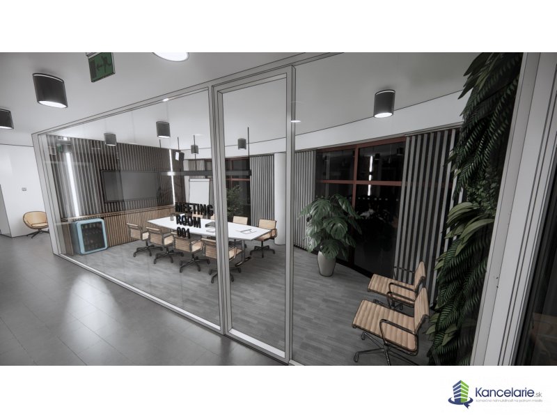 Budova má 4NP, vlastnú zasadaciu miestnosť na 1.NP (1.01a), ktorú si budú môcť nájomníci rezervovať.