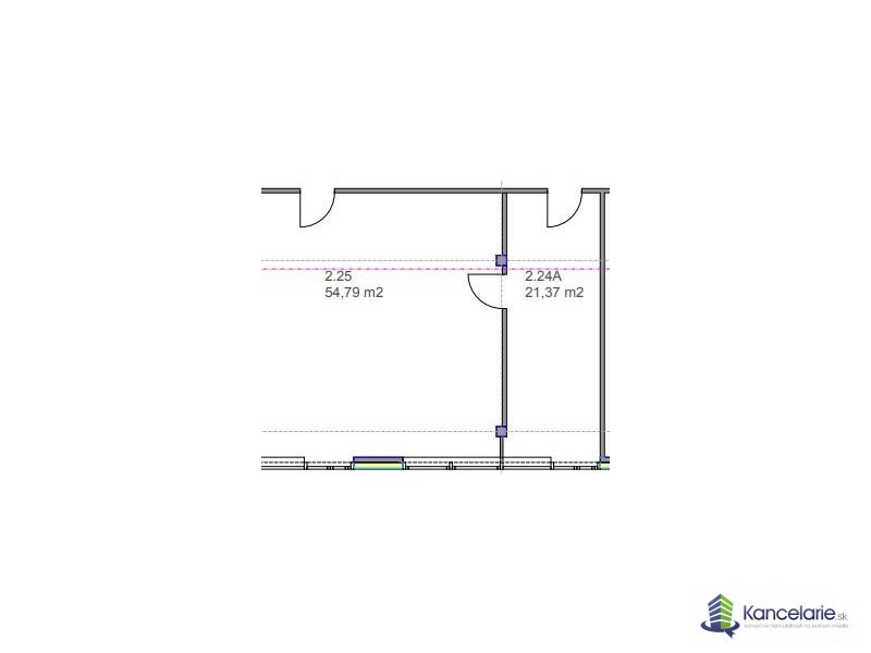 Kancelária 54,79m2 s menšou miestnosťou, buď ako samostatný office alebo meetingová miestnosť.