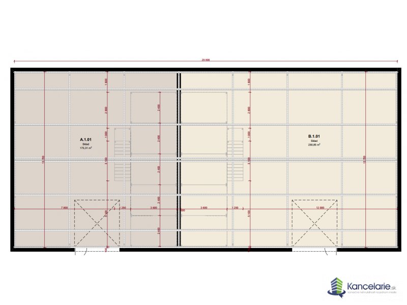 | Označenie priestoru | Skladové priestory 173m2 a 230m2 |